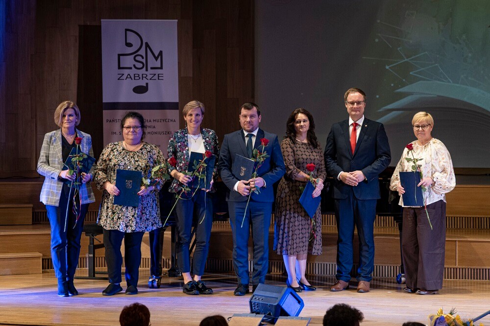 13 października 2025 roku w Państwowej Szkole Muzycznej im. Stanisława Moniuszki odbyły się miejskie obchody Dnia Edukacji Narodowej. To szczególne wydarzenie było okazją do wyróżnienia nauczycieli, dyrektorów i pracowników oświaty za ich pasję, zaangażowanie oraz wkład w rozwój edukacji w Zabrzu. W trakcie uroczystości wręczono Nagrody Prezydenta Miasta Zabrze oraz wyróżnienia dla nauczycieli odznaczonych Medalem Komisji Edukacji Narodowej i Nagrodą Śląskiego Kuratora Oświaty. Prezydent Kamil Żbikowski złożył wszystkim nauczycielom serdeczne podziękowania, podkreślając ich nieoceniony wkład w kształtowanie młodych ludzi. Wydarzenie miało również wyjątkowy charakter artystyczny – uczniowie Państwowej Szkoły Muzycznej zaprezentowali występ, który nadał uroczystości wspaniałą atmosferę i podkreślił rangę obchodów.