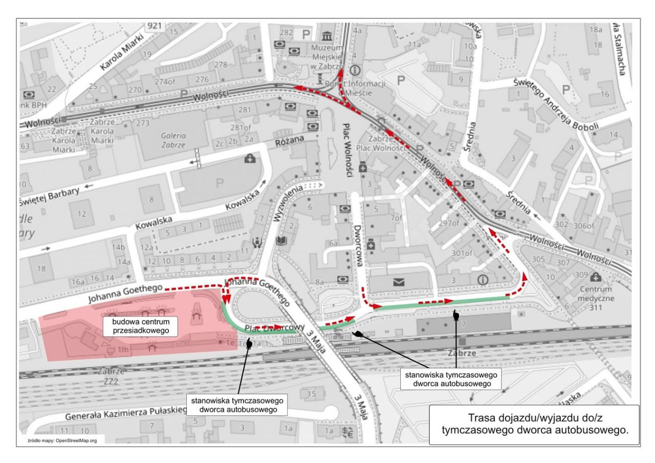 Duże zmiany w centrum Zabrza! Od soboty autobusy będą obsługiwały tymczasowy dworzec