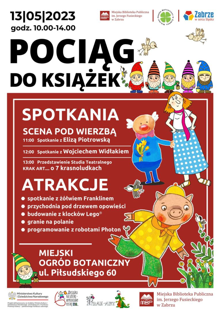 Już w najbliższą sobotę, 13 maja, po raz kolejny odjedzie „Pociąg do książek”. Miejska Biblioteka Publiczna w Zabrzu wraz z Miejskim Ogrodem Botanicznym zapraszają na łąkę pełną atrakcji, pisarzy i wszędobylskich krasnali.