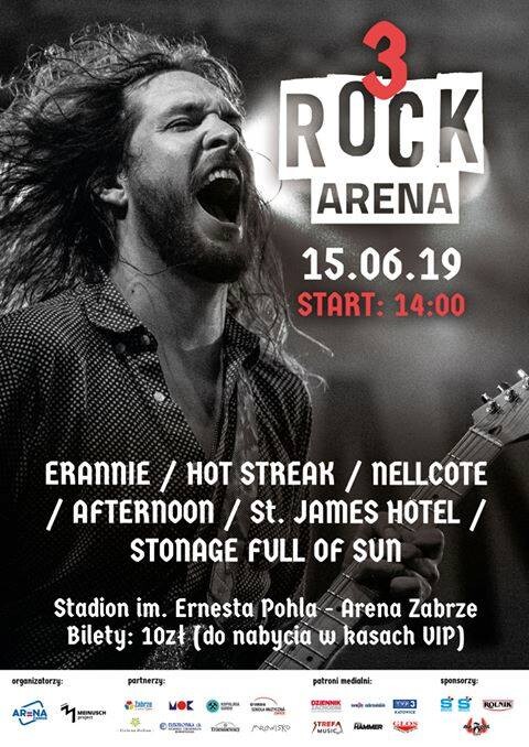 Znamy już finalistów trzeciej edycji Festiwalu Rock Arena, a są nimi nst. zespoły: ERANNIE, HOT STREAK, NELLCOTE, AFTERNOON, ST. JAMES HOTEL, STONAGE FULL OF SUN.