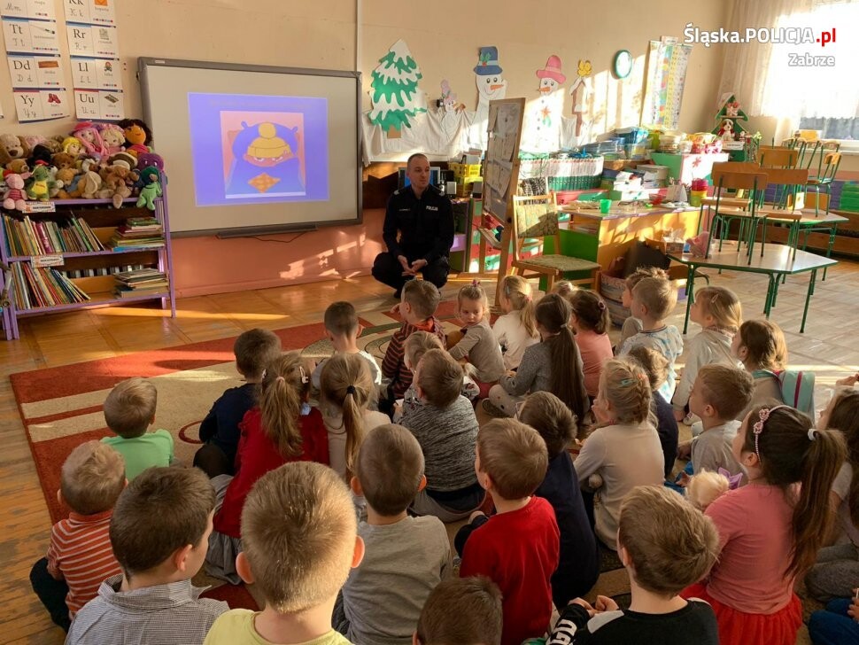 W trosce o bezpieczeństwo dzieci zabrzańscy policjanci zajmujący się profilaktyką społeczną oraz dzielnicowi stale prowadzą cykl spotkań w przedszkolach i szkołach, których tematem jest bezpieczeństwo. W ostatnim czasie policyjni profilaktycy odwiedzili Przedszkole Nr 49. W pogadankach wzięły udział dzieci, które z zainteresowaniem słuchały o tym, jak bezpiecznie bawić się w domu i poza nim. Dzieciaki bardzo chętnie odpowiadały na szereg zadanych im pytań oraz wykazały się dobrą wiedzą w zakresie unikania zagrożeń. Podczas spotkań emitowany był równie film dotyczący zasad bezpieczeństwa. Utrwalano też zasady bezpiecznego przechodzenia przez jezdnię i podkreślano role odblasków w byciu widocznym na drodze.