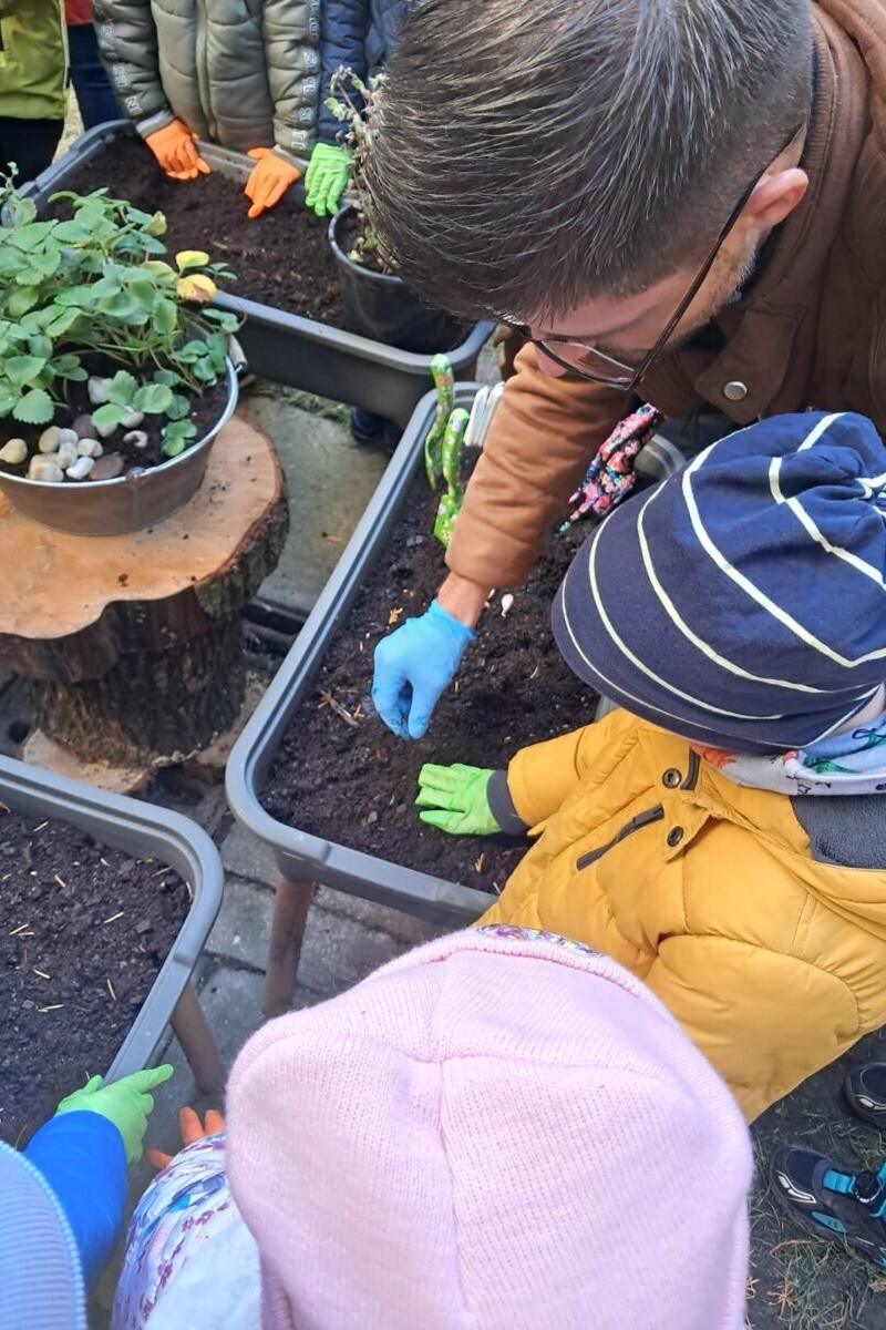 Część praktyczna warsztatów umożliwiała współtworzenie miniogródka, który powstał na przestrzeni patio Przedszkola nr 48.