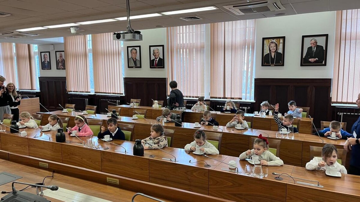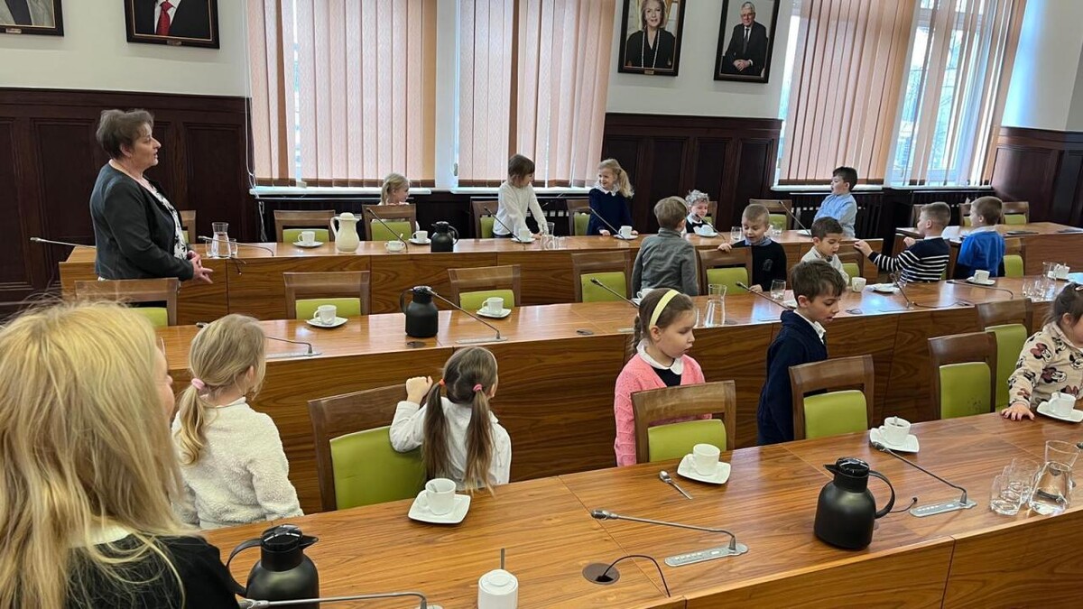 W Sali Sesyjnej dzieci miały okazję sprawdzić mikrofony i poczuć się jak prawdziwi mówcy. Każdy przedszkolak chciał zabrać głos w „ważnej” sprawie. Na zakończenie wizyty, w imieniu Pani Prezydent, przedszkolaki spotkały się z zastępcą prezydenta Tomaszem Olichwerem, z którym zrobili pamiątkowe zdjęcie.