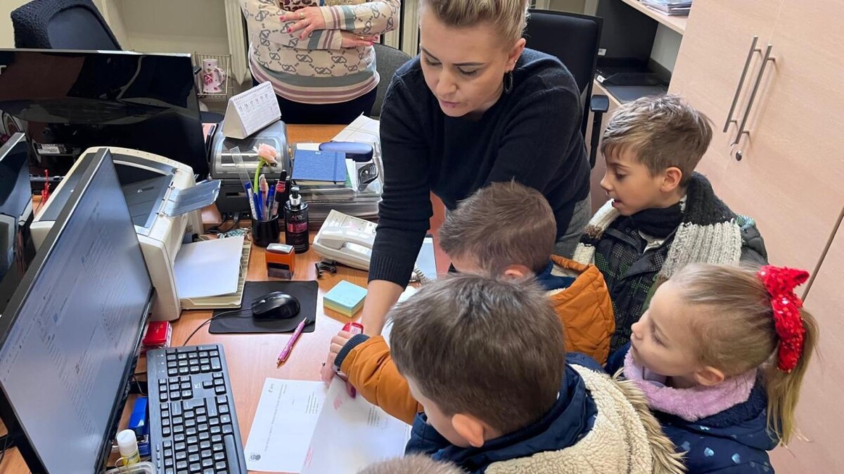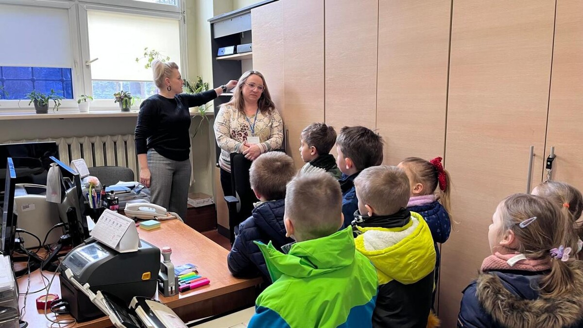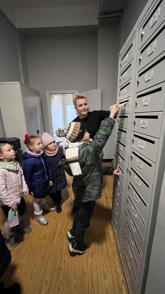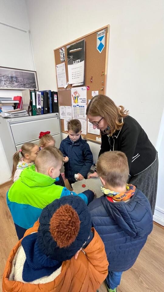 Wizyta w kancelarii urzędu, gdzie na co dzień obsługiwana jest korespondencja, była dla dzieci fascynującym doświadczeniem. Przy tej okazji przedszkolaki opracowały kolorowy list, który następnie został wysłany pocztą do ich przedszkola.