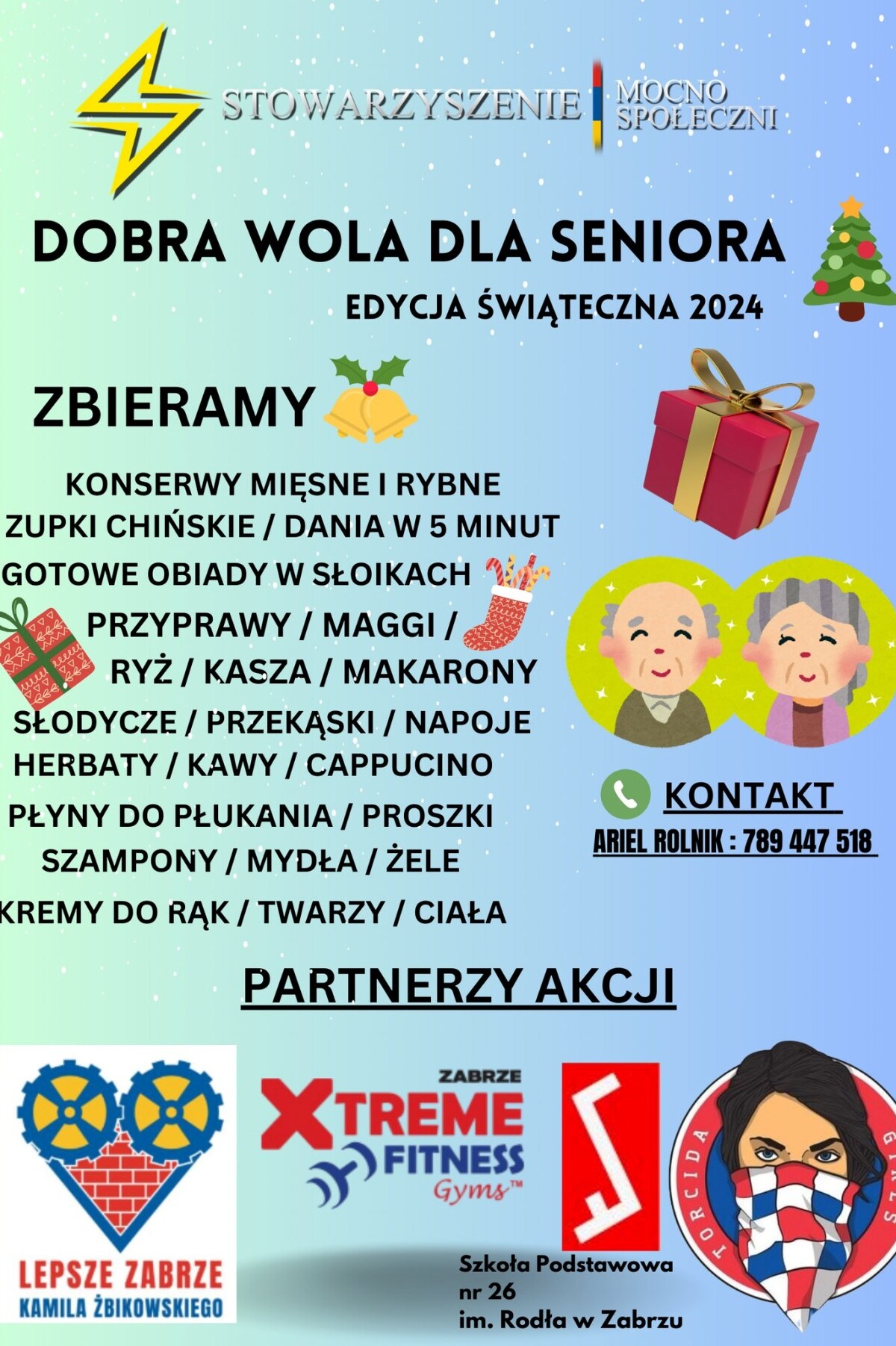 Stowarzyszenie MocnoSpołeczni wraz z partnerami uruchomiło niedawno zbiórkę darów na kolejną akcję “Dobra wola dla seniora”. Pomóc może każdy, nawet drobnym podarunkiem.