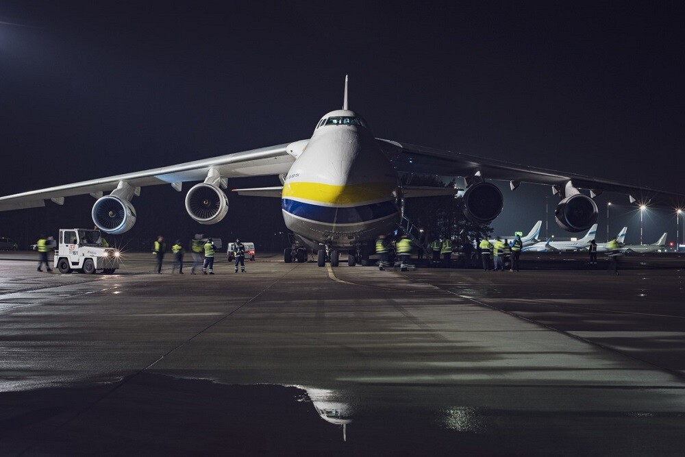 Na pokładzie An-124, na zlecenie zabrzańskiej firmy ZARYS, przyleciało około 700 metrów sześciennych (ok. 116 ton) sprzętu medycznego, to jest: kombinezony ochronne, maski FFP3 o właściwościach antywirusowych i antybakteryjnych, maski tlenowe, fartuchy chirurgiczne, a także pulsoksymetry i termometry bezdotykowe.