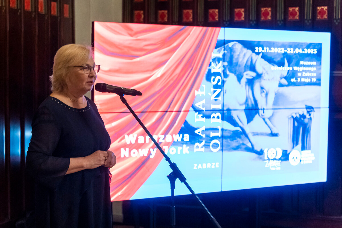 – W Zabrzu mieliśmy już przyjemność gościć Rafała Olbińskiego w ramach projekt „Szulc i po Szulcu”. Jego dzieła wystawione zostały w unikatowej przestrzeni budynku dawnego hotelu Admiralspalast, któremu nadajemy aktualnie nowe funkcje społeczne i gospodarcze – stwierdza prezydent Zabrza Małgorzata Mańka-Szulik. – Cieszę się, że dziś, w wyjątkowym roku jubileuszu 100-lecia nadania Zabrzu praw miejskich, możemy ponownie spotkać z twórczością artysty. Warto zauważyć, że jest to pierwsza wystawa w reprezentacyjnej siedzibie Muzeum Górnictwa Węglowego po jej gruntownej rewitalizacji. Obiekt, w którym niegdyś mieściło się pierwsze starostwo powiatowe w Zabrzu, dzięki przeprowadzonej właśnie renowacji służy mieszkańcom jako miejsce wartościowych spotkań kulturalnych, naukowych i społecznych – dopowiada prezydent Zabrza.