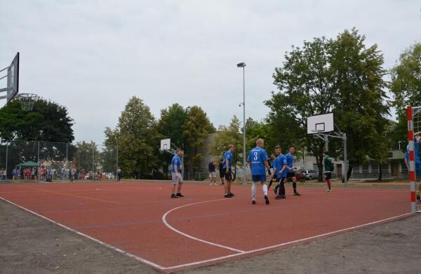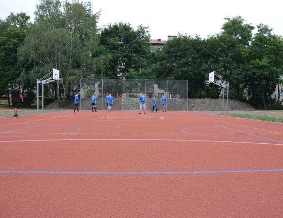 • boisko wielofunkcyjne o nawierzchni poliuretanowej o wym. 32m x 14m wraz z wyposażeniem w osprzęt sportowy oraz piłkochwyty. Boisko przeznaczone będzie do gry w mini piłkę nożną, siatkówkę i koszykówkę;
