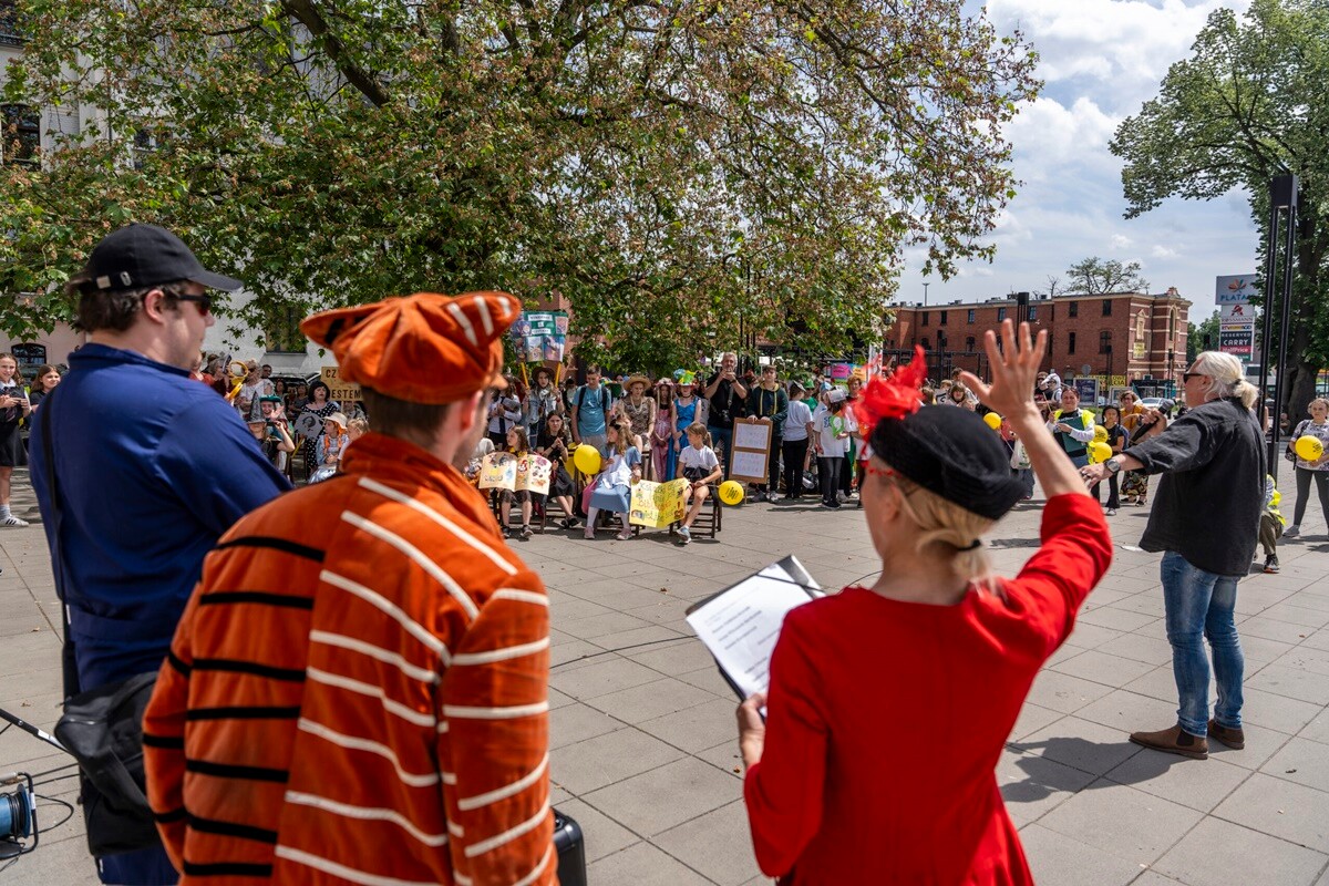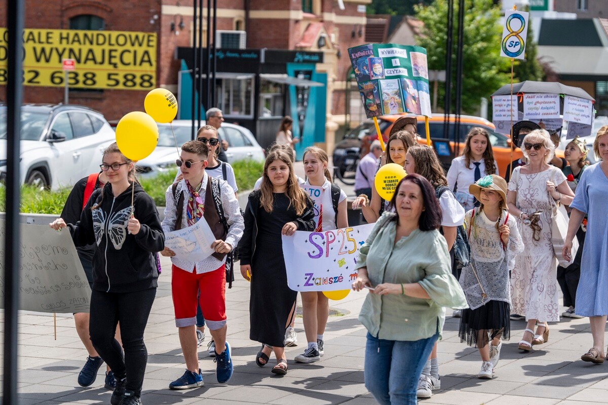 O godz. 12.15 z placu Wolności ruszył barwny korowód, który dotarł na plac Teatralny. Tam zaprezentowano szkoły biorące udział w wydarzeniu. Następnie odbył się happening teatralny pn. „Śmiechoterapia”. Impreza czytelnicza zakończyła się rozdaniem nagród.