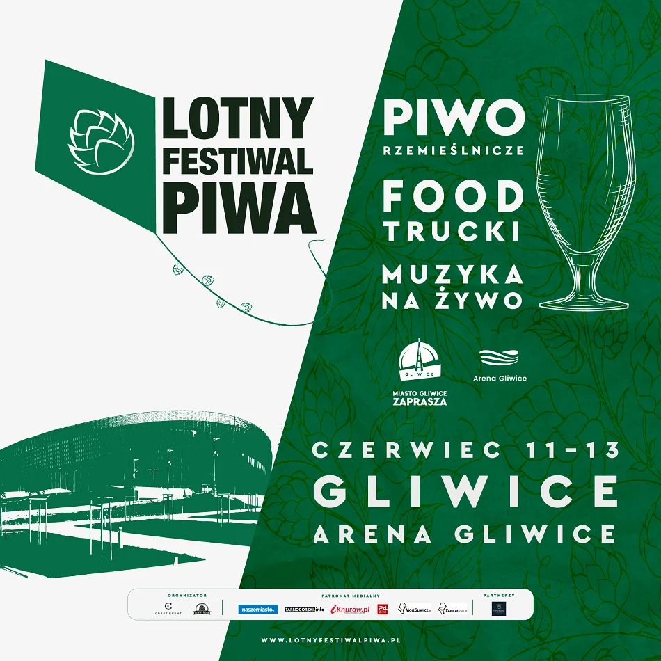 Zorganizowany już w wielu miastach Lotny Festiwal Piwa od początku cieszy się dużą popularnością. Bogata oferta rzemieślniczych piw to wizytówka każdej edycji festiwalu. Oprócz tego na placu przy Arenie Gliwice pojawią się liczne foodtrucki z jedzeniem z całego światza.
