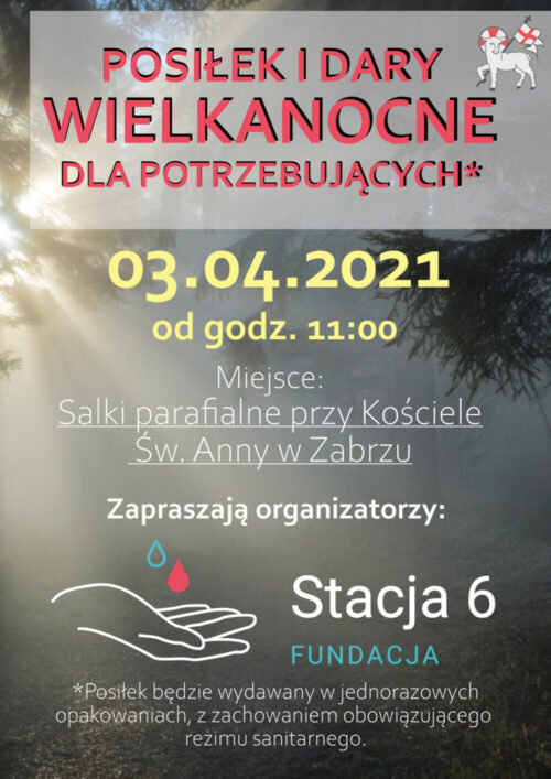Już 3 kwietnia w Wielką Sobotę będzie miała miejsce akcja „Podziel się świętami” organizowana przez fundację Stacja 6. Potrzebujący będą mogli liczyć na paczki z ubraniami i żywnością pod kościołem św. Anny w Zabrzu.