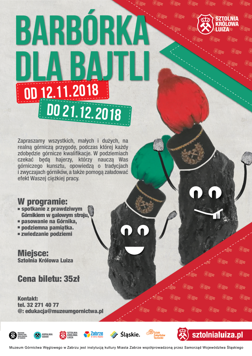 Z okazji tego wyjątkowego święta Sztolnia Królowa Luiza zaprasza do uczestnictwa w wydarzeniu „Barbórka dla bajtli”.