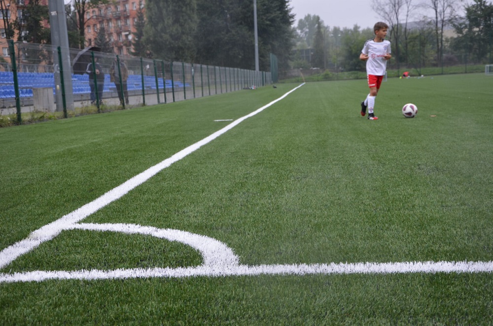 • ułożenie nowej nawierzchni z trawy syntetycznej z liniami do piłki nożnej wraz z wypełnieniem nawierzchni piaskiem kwarcowym i granulatem gumowym EPDM,