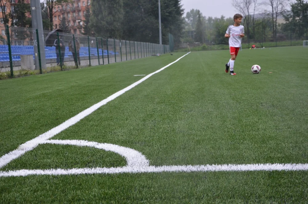 - ułożenie nowej nawierzchni z trawy syntetycznej z liniami do piłki nożnej wraz z wypełnieniem nawierzchni piaskiem kwarcowym i granulatem gumowym EPDM,
