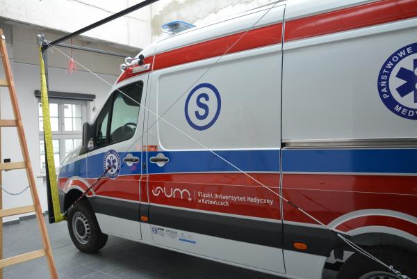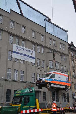 Na miejsce przyjechał specjalistyczny dźwig, który podniósł trzytonowy ambulans na wysokość 25 metrów i umieścił go na ostatniej kondygnacji Centrum Symulacji Medycznej, gdzie powstanie tzw. strefa przedszpitalna, czyli obszar, w którym symulowane są scenariusze nagłych zdarzeń medycznych, takich jak wypadki czy nagłe zatrzymanie akcji serca.