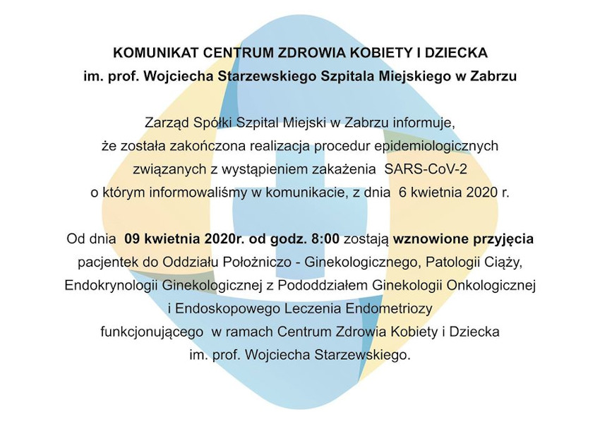 Komunikat Centrum Zdrowia Kobiety i Dziecka w Zabrzu.