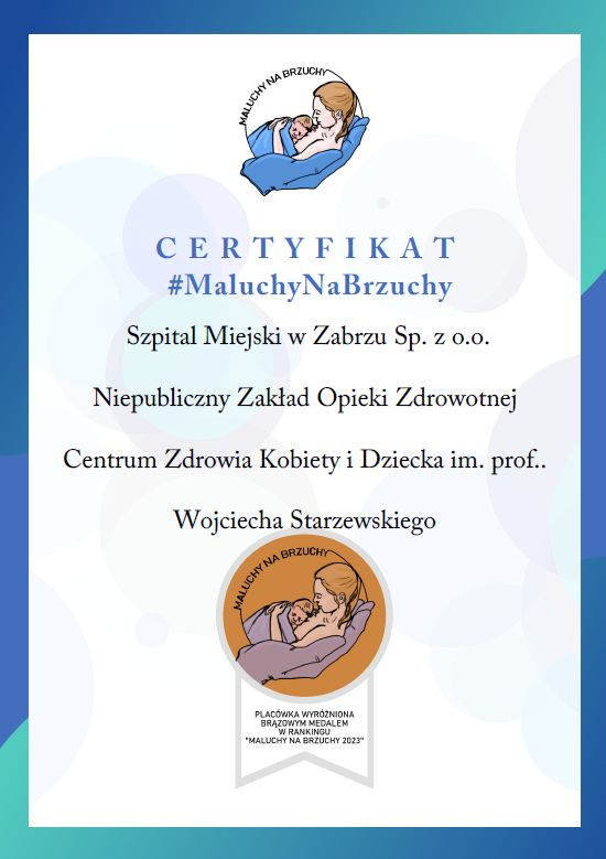Centrum Zdrowia Kobiety i Dziecka w Zabrzu zdobyło brązowy medal w rankingu “Maluchy na brzuchy 2023”. Ranking opiera się na głosach matek, które wyraziły swoją opinię poprzez ankietę Fundacji “Rodzić Po Ludzku”.