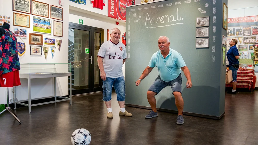 Piłkarzom towarzyszyły żony oraz mama braci Pudło, która była z Arsenalem od samego początku wspierając swoich synów w dążeniu do realizacji sportowych celów. Podczas wizyty Piotra Pudlo wykonawcy pierwszego herbu Arsenalu oraz jednego z najlepszych piłkarzy w historii klubu pojawiła się również okazja odtworzenia jednegoz najstarszych zdjęć, znajdującego się w kronikach klubu z 1972 roku, które również zdobi plakat promujący naszą wystawę.