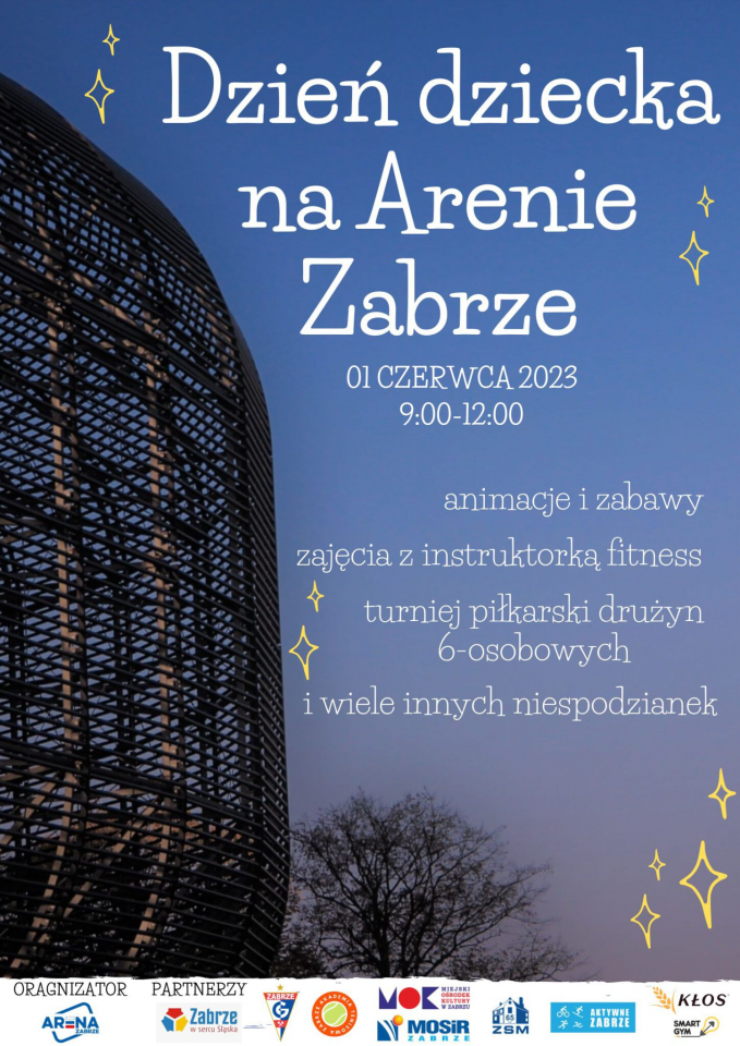 Tradycyjnie jak co roku w przestrzeniach Areny Zabrze odbędzie się wydarzenie organizowane z myślą o dzieciach z naszego miasta. 1 czerwca, w czwartek, od godziny 9.00 do 12.00 zapraszamy dzieci, młodzież do skorzystania z wielu atrakcji, jakie zostały przygotowane. W programie: animacje i zabawy, dobra muzyka, zajęcia z instruktorką fitness, nauka gry w tenisa i turniej minitenisa, turnieje „piłkarzyków”, dmuchańce, turniej piłkarski drużyn 6-osobowych, degustacje i niespodzianki, a także stoiska z zabawkami.