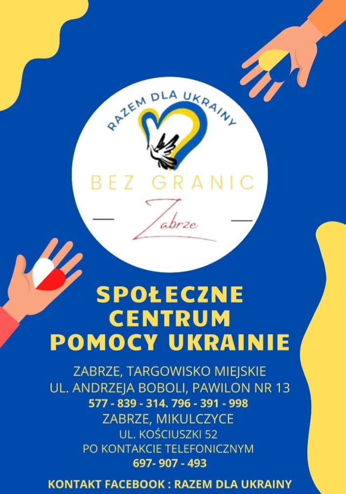 We wtorek 29 marca o godzinie 16:00 w Zabrzu otwarty zostanie punkt Społecznego Centrum Pomocy Ukrainie. Punkt ten będzie się znajdował w Pawilonie nr 13 na Targowisku Miejskim przy ul. Boboli w centrum Zabrza.