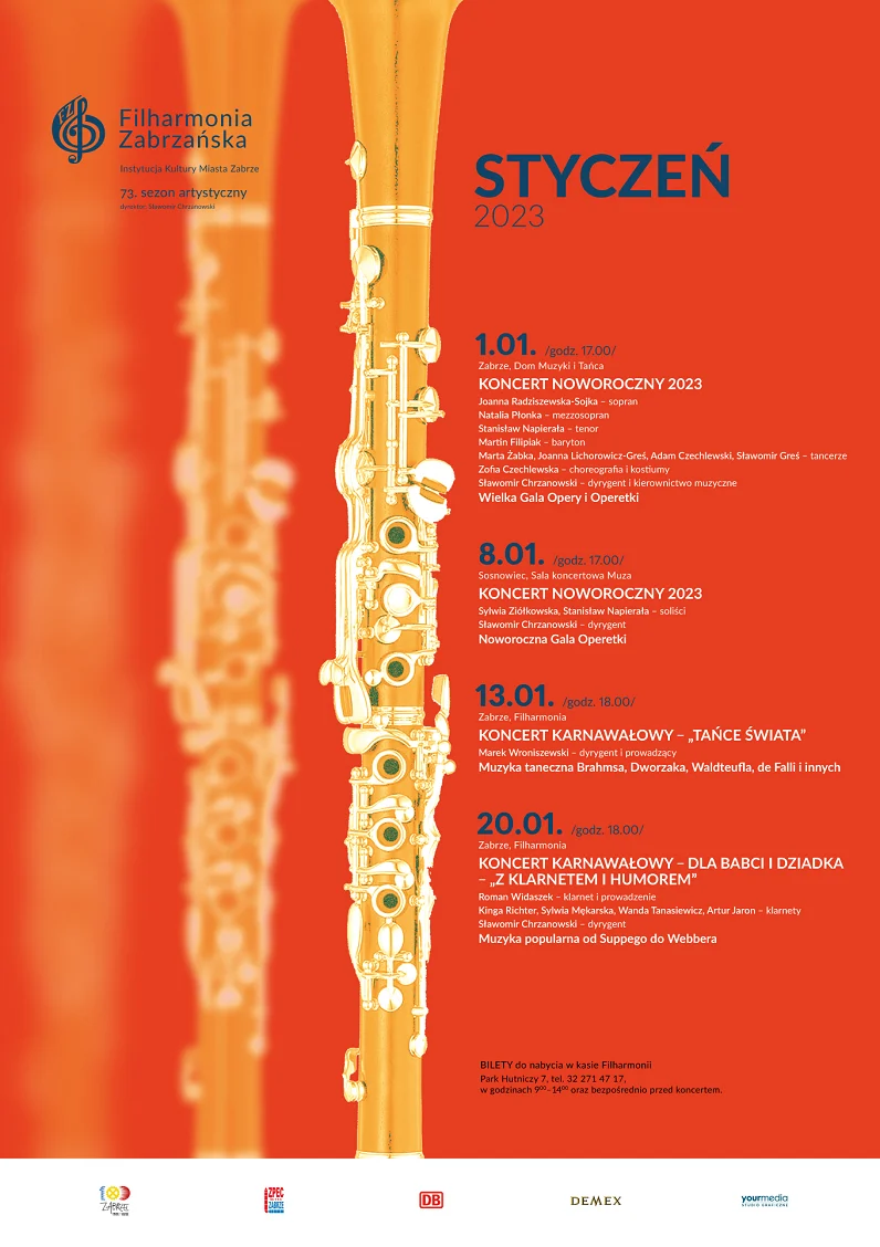 Natomiast już tydzień później, 20 stycznia, filharmonicy zapraszają na koncert karnawałowy pn. „Dla babci i dziadka – Z klarnetem i humorem”. Poprowadzi go wybitny klarnecista, Roman Widaszek. Również na klarnetach towarzyszyć mu będą: Kinga Richter, Sylwia Mękarska, Wanda Tanasiewicz i Artur Jaron. Razem z muzykami zagra Zabrzańska Filharmonia pod batutą Sławomira Chrzanowskiego. Na scenie wybrzmi muzyka popularna z repertuaru od Supperego do Webbera.