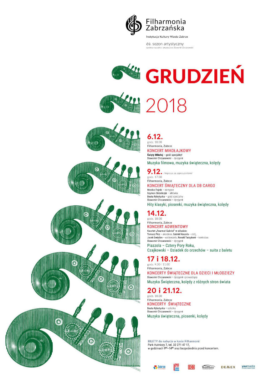 Pełen repertuar Filharmonii Zabrzańskiej zaplanowany na grudzień br. na plakacie poniżej.