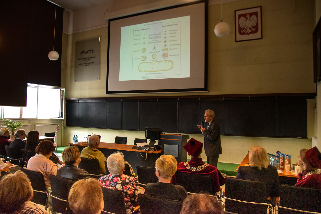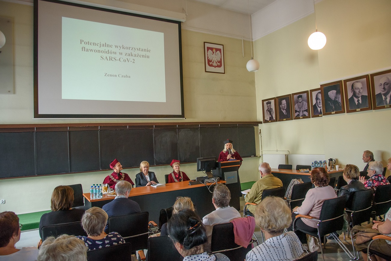 Wykład inauguracyjny pt.: „Potencjalne wykorzystanie flawonoidów w zakażeniach SARS-CoV-2” wygłosił kierownik Katedry i Zakładu Mikrobiologii i Immunologii Wydziału Nauk Medycznych w Zabrzu prof. dr hab. n. med. Zenon Czuba.