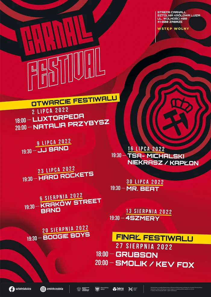 Już w sobotę 2 lipca o godzinie 18:00 zabrzańska strefa Carnall znów wypełni się dźwiękami muzyki, a wszystko za sprawą Carnall Fesivlu. Tego dnia odbędzie się koncert inaugurujący tegoroczną, już drugą edycję, Carnall Festivalu. Na scenie wystąpi zespół Luxtorpeda oraz Natalia Przybysz. To dopiero początek, ponieważ Carnall Festival będzie trwał do końca wakacji!