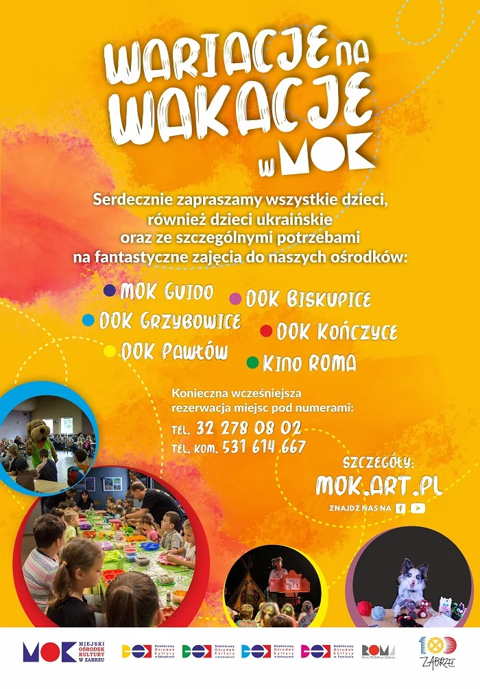 Zabrzański MOK w te wakacje przygotował wiele warsztatów dla dzieci i zajęć dla dorosłych. Udział w warsztatach podczas „Kreatywnej Warsztatowni” kosztuje 10 zł od osoby i konieczna jest wcześniejsza rezerwacja miejsc.