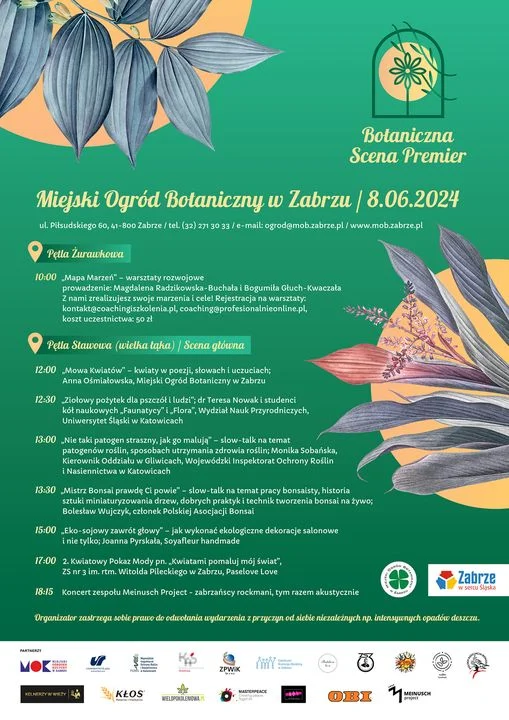 – Już 08.06.2024 w Miejskim Ogrodzie Botanicznym w Zabrzu rozsuwamy kurtynę po raz drugi. Zespół „aktorów pierwszego planu” jest mocny. Będzie ekologicznie i botanicznie, ziołowo i sojowo, modnie, muzycznie i spontanicznie – przekazał Miejski Ogród Botaniczny w Zabrzu w mediach społecznościowych.