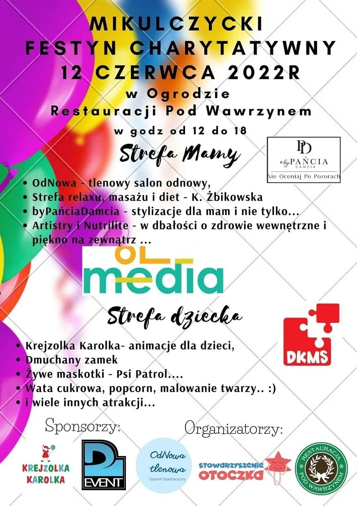 W niedzielę 12 czerwca w godzinach od 12:00 do 18:00 w restauracji Pod Wawrzynem (Pl. Norberta Kroczka 10) odbędzie się Mikulczycki Festyn Charytatywny na rzecz Nikodema chorującego na białaczkę.