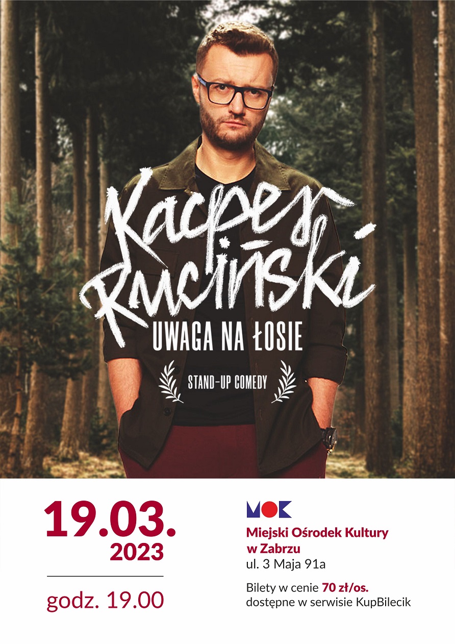 Miejski Ośrodek Kultury w Zabrzu zaprasza na występ Kacpra Rucińskiego, który przedstawi program pt. „UWAGA NA ŁOSIE”!