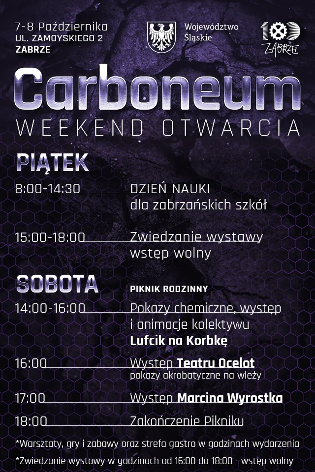 W sobotę zwiedzanie wystawy „Carboneum” odbędzie się w godzinach od 16:00 do 18:00. Wstęp wolny.