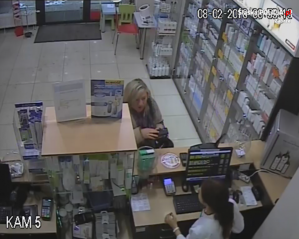 Kryminalni z komisariatu I prowadzą czynności w sprawie przywłaszczenia portfela z gotówką, dokumentami i kartami płatniczymi. Do zdarzenia doszło 8 lutego 2018 roku przed godziną 9.00. W aptece przy ulicy 3 Maja 34 widoczna na zdjęciu kobieta przywłaszczyła portfel. Wizerunek podejrzewanej zarejestrował monitoring. Świadkowie zdarzenia, osoby mogące rozpoznać podejrzewaną oraz wszelkie osoby, które posiadają jakiekolwiek informacje mogące przyczynić się do ustalenia sprawcy proszone są o kontakt z prowadzącym postępowanie pod nr tel. 32 370 35 10, 32 370 35 39, 32 370 35 11 lub o kontakt z najbliższą jednostką Policji – 997.