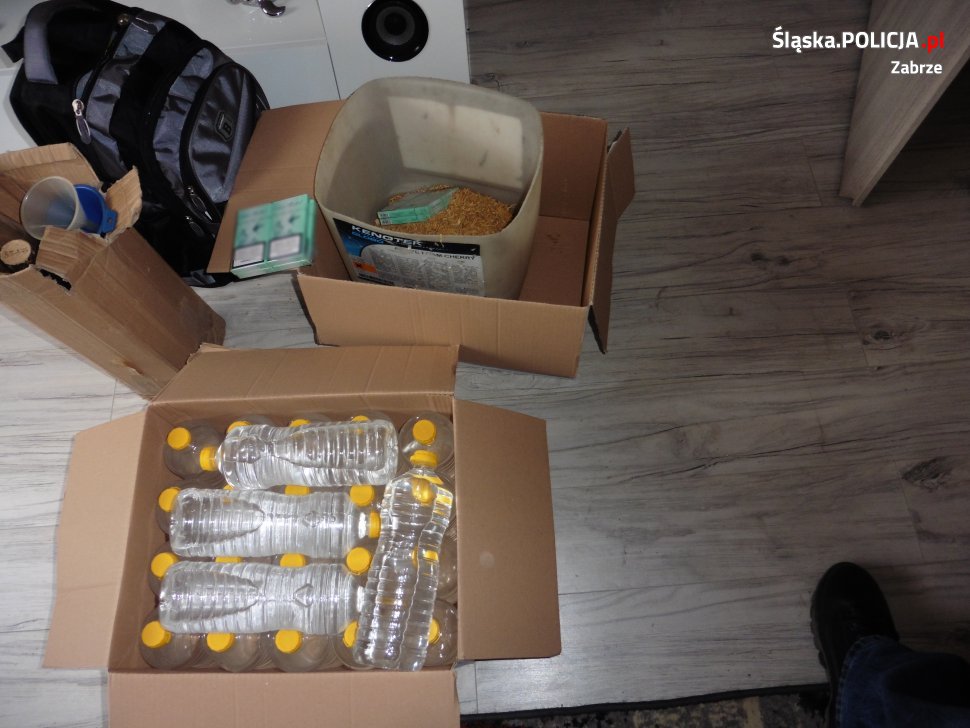 Policjanci zajmujący się zwalczaniem przestępczości gospodarczej z zabrzańskiej komendy uzyskali informację, że czterech mieszkańców Zabrza dysponują nielegalnym alkoholem i tytoniem. Wspólnie ze śląskimi funkcjonariuszami służby celno-skarbowej wkroczyli do mieszkań, gdzie, jak podejrzewali, mogły znajdować się wyroby spirytusowe i krajanka tytoniowa. W związku z naruszeniem przepisów kodeksu karno-skarbowego, mundurowi zabezpieczyli ponad 21 litrów alkoholu bez polskich znaków akcyzy, przeszło 6,5 kg tytoniu, 400 paczek papierosów bez polskich znaków akcyzy i ponad 9 tys. pojedynczych papierosów. Straty Skarbu Państwa wstępnie oszacowano na kwotę ponad 22 tys. złotych. Na miejscu funkcjonariusze służby celno-skarbowej przeprowadzili badanie zabezpieczonego alkoholu. Wykazało ono, że alkohol o mocy od ponad 71% był mocno zanieczyszczony.