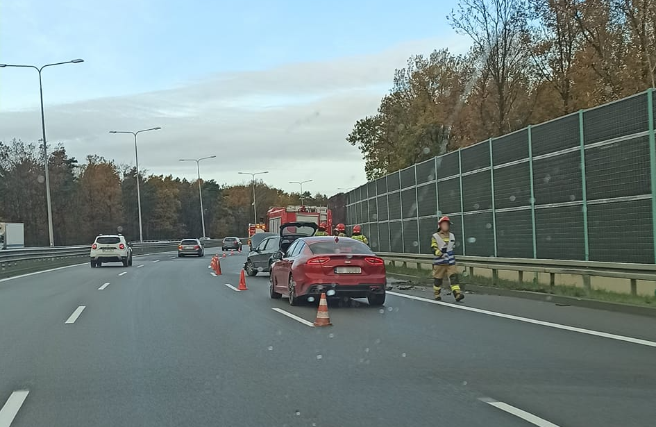 Kolizja trzech pojazdów na DTŚ. Jeden pas był zablokowany!
