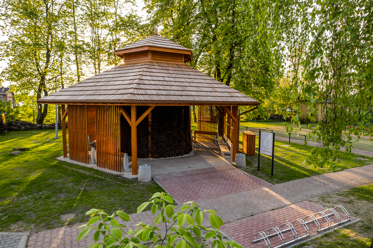 Tężnia to miejsce, przy którym można się spotkać, odpocząć, ale też zadbać o swoje zdrowie wdychając leczniczą solankę. Konstrukcja z drewna z gałęziami tarniny, po których spływa solanka to także odpowiedź na potrzeby społeczeństwa, które coraz poważniej podchodzi do swojego zdrowia. Rozbijająca się na drobne krople solanka tworzy bryzę, która schładza i zwiększa wilgotność oraz zmniejsza zapylenie powietrza wokół tężni. Wdychanie go przez jedną godzinę dostarcza taką samą dawkę jodu co kilka dni pobytu nad morzem. Solankowa bryza nawilża i pobudza do produkcji śluzu górne drogi oddechowe, które dzięki temu szybciej pozbywają się zanieczyszczeń. Zawarty w bryzie jod sprzyja m.in. prawidłowemu funkcjonowaniu tarczycy. Inhalacje stosowane u zdrowych ludzi zwiększają odporność organizmu.