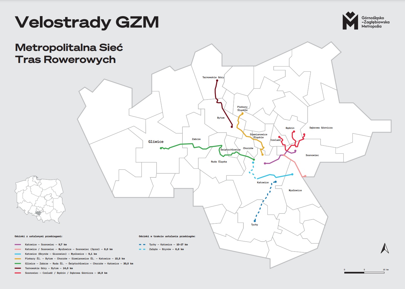 Powstanie velostrad GZM to jedno ze strategicznych działań podejmowanych przez miasta Metropolii. Założenie jest takie, aby pełniły one funkcję transportową, a nie tylko rekreacyjną, czyli zapewniały możliwość bezpiecznego przejazdu w drodze do pracy, szkoły, czy na studia w ramach jednego miasta lub pomiędzy miastami.