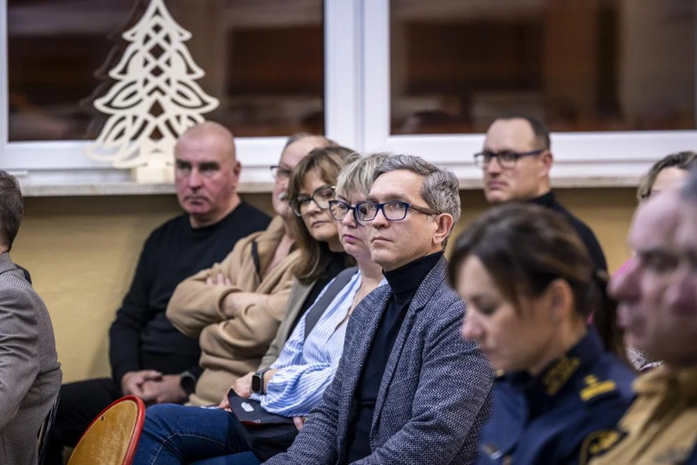 Podczas spotkania mocno wybrzmiał także wątek bezpieczeństwa. Komendant Państwowej Straży Pożarnej mówił wprost o zagrożeniach, klęskach żywiołowych i możliwych kryzysach, również tych związanych z konfliktem zbrojnym. Tłumaczył, gdzie szukać schronienia i jak przygotować się na sytuacje kryzysowe, apelując o zapasy wody, żywności i zabezpieczenie dostaw energii.