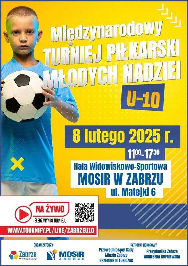 Już 8 lutego 2025 r. hala Miejskiego Ośrodka Sportu i Rekreacji w Zabrzu stanie się areną wyjątkowego turnieju piłkarskiego. W godzinach od 11:00 do 17:30 młodzi zawodnicy w kategorii U10 rozegrają mecze na trzech boiskach, dostarczając widzom niezapomnianych sportowych wrażeń.