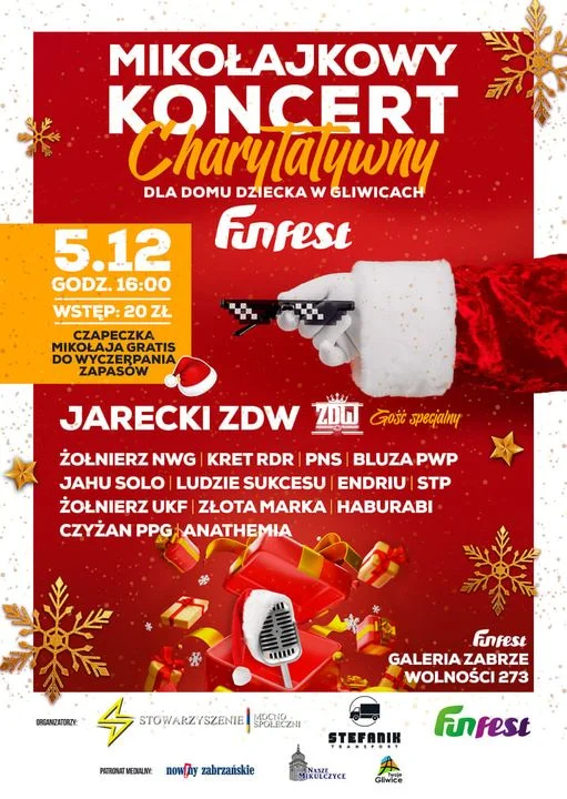 Z okazji Mikołajek zabrzańskie Stowarzyszenie MocnoSpołeczni wraz z firmą transportową Krzysztofa Stefanika organizują „Mikołajkowy Koncert Charytatywny” na rzecz dzieci z Domu Dziecka w Gliwicach. Koncert odbędzie się w niedzielę 5 grudnia o godzinie 16:00 w Kręgielni FunFest w Zabrzu przy ulicy Wolności 273 (Galeria „Zabrze”).