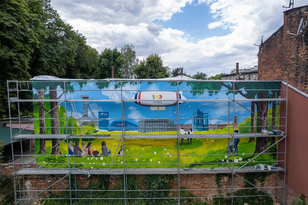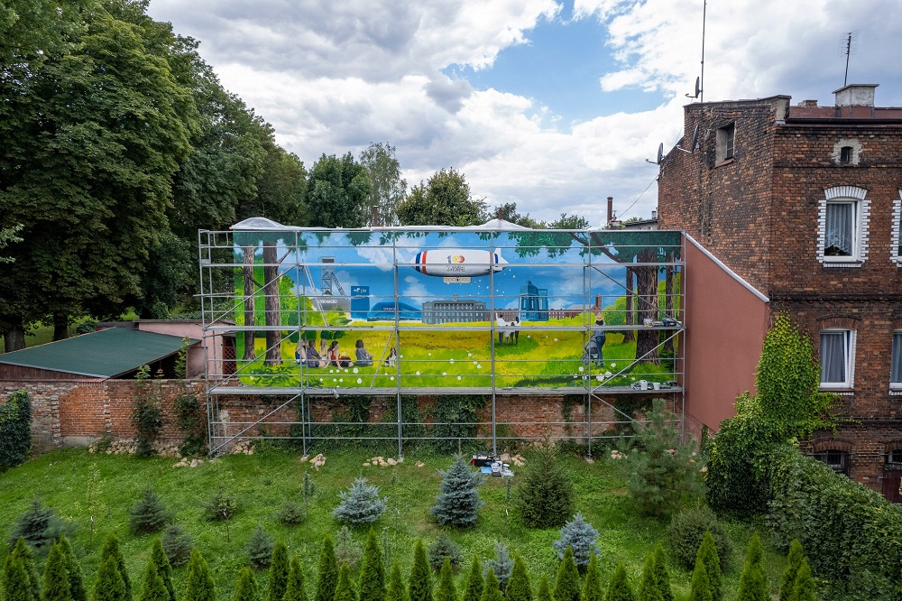Mural na osiedlu Zandka jest już na ostatniej prostej. Malowidło powstaje z okazji obchodzonego w tym roku 100-lecia miasta Zabrze. Zobaczcie postęp prac!