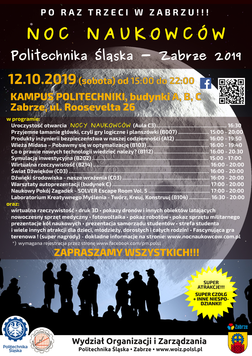 Gry logiczne i planszówki, wieża Midasa, warsztaty autoprezentacji, Solver Escape Room czyli Naukowy Pokój Zagadek, pokazy robotów i sprzętu militarnego – to tylko część atrakcji, jakie czekają na tych, którzy wezmą udział w zabrzańskiej odsłonie Nocy Naukowców Politechniki Śląskiej.