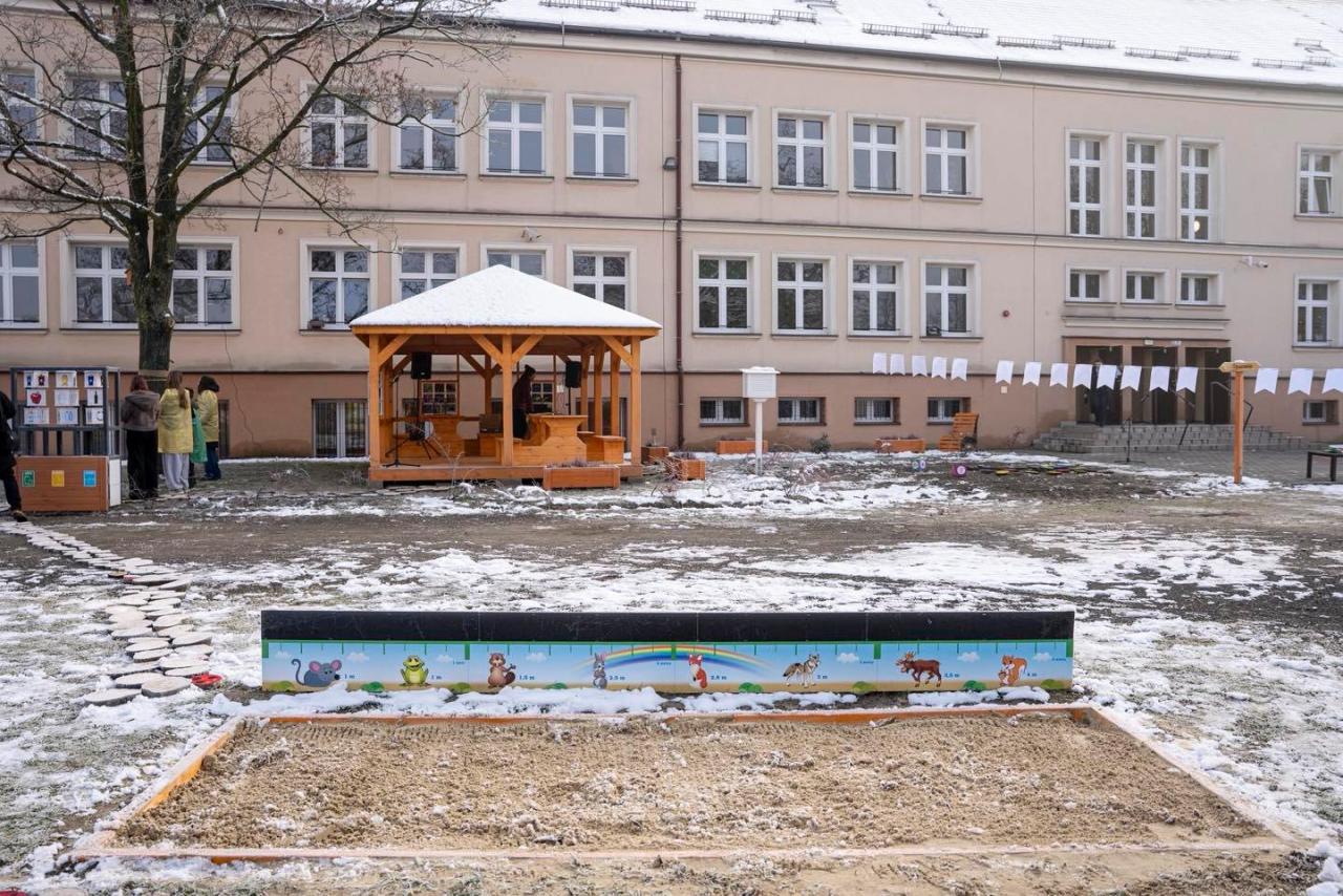 – Będą tu lekcje i zajęcia popołudniowe. Dzieci będą mogły wejść i bawić się. Pod wiatą są gry, a nauczyciele stworzyli gry na podłożu. Jest pajęcza sieć, po której będą skakać – wyjaśnia dyrektorka Aneta Kawecka.