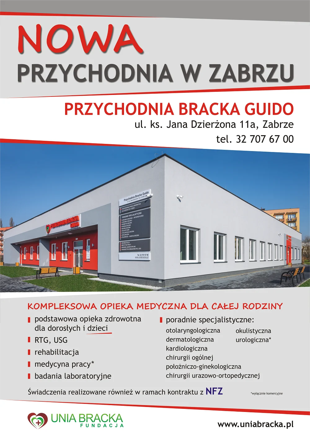 Przez wiele miesięcy trwały intensywne przygotowania i 1 marca została otwarta Przychodnia Bracka Guido. Jest to placówka medyczna Fundacji „Unia Bracka”. Przychodnia znajduje się w Zabrzu w dzielnicy Guido przy ulicy Ks. Jana Dzierżona 11a. Z usług medycznych oferowanych w przychodni można skorzystać zarówno bezpłatnie w ramach kontraktu z NFZ jak i prywatnie. Na pacjentów czeka wielospecjalistyczny zespół medyczny, który na powierzchni prawie 1 300 m2 obejmuje kompleksową opieką zarówno osoby dorosłe jak i dzieci.