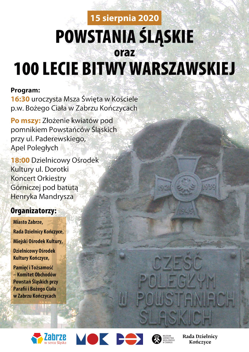 W najbliższą sobotę, 15 sierpnia, w Zabrzu-Kończycach odbędą się uroczystości upamiętniające Powstania Śląskie oraz 100-lecie Bitwy Warszawskiej.