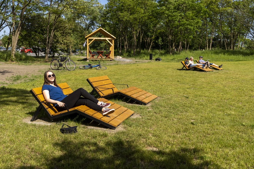 W południowej części terenu powstała infrastruktura na potrzeby rekreacyjne. Zamontowano tu małą architekturę (ławki, wiaty rekreacyjne). Istniejące zbiorniki wodne zostały oczyszczone, a tuż przy nich powstały drewniane pomosty. Odwiedzający to miejsce mogą odpocząć na trawiastej plaży, na której zamontowano leżaki.
