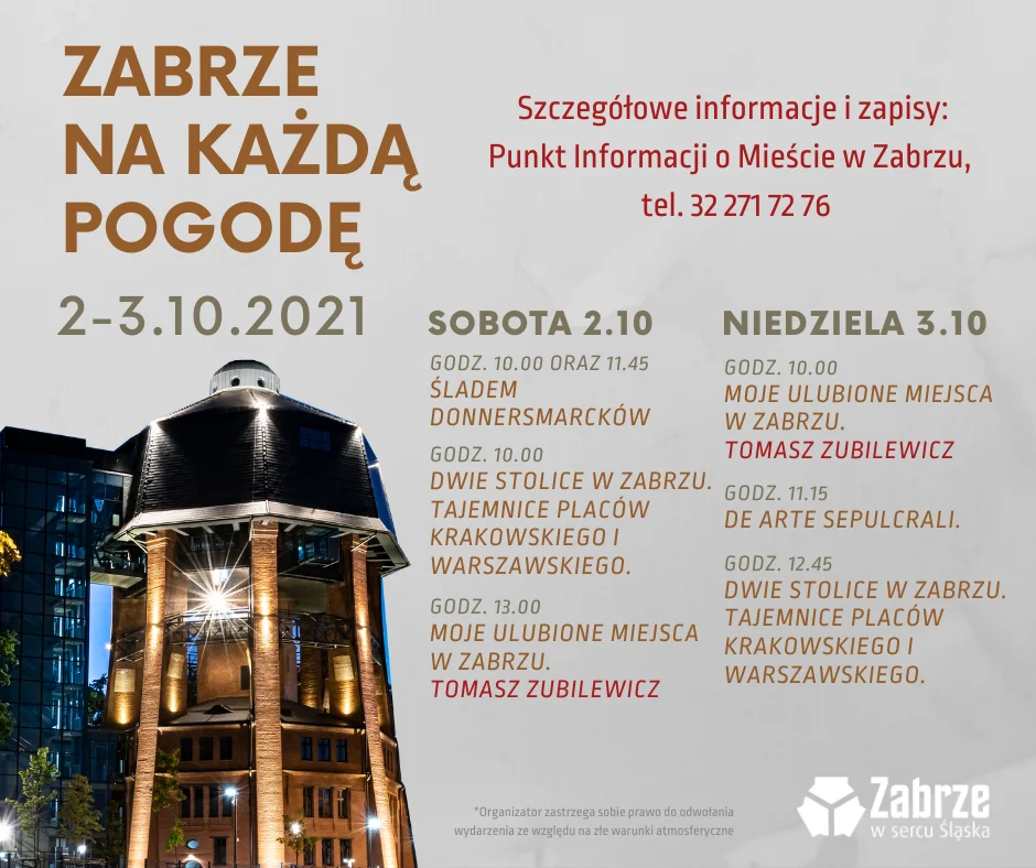 - Trasa III: “Moje ulubione miejsca w Zabrzu” Tomasz Zubilewicz – godz. 13.00