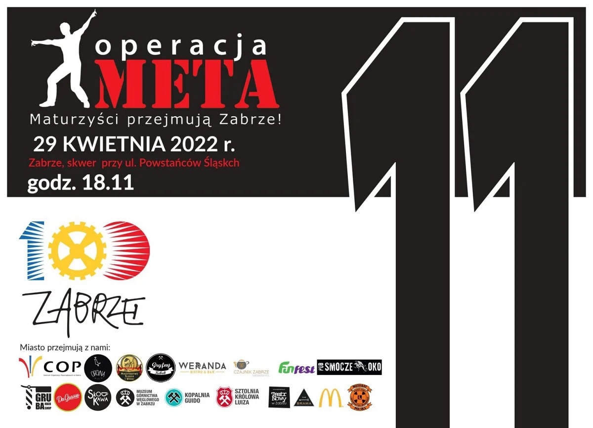 Nazwa imprezy nie jest przypadkowa. Tradycyjnie w ostatni piątek kwietnia, tuż przed egzaminami maturalnymi, absolwenci zabrzańskich szkół świętują dotarcie do mety tego etapu edukacji. Aby uczcić ten moment, a przy okazji dać chwilę wytchnienia przed wymagającymi i stresującymi maturami, Małgorzata Mańka-Szulik, prezydent Zabrza, za pośrednictwem Centrum Organizacji Pozarządowych oferuje im Operację Meta, w trakcie której maturzyści mogą “przejąć” zabrzańskie puby, restauracje i kluby.