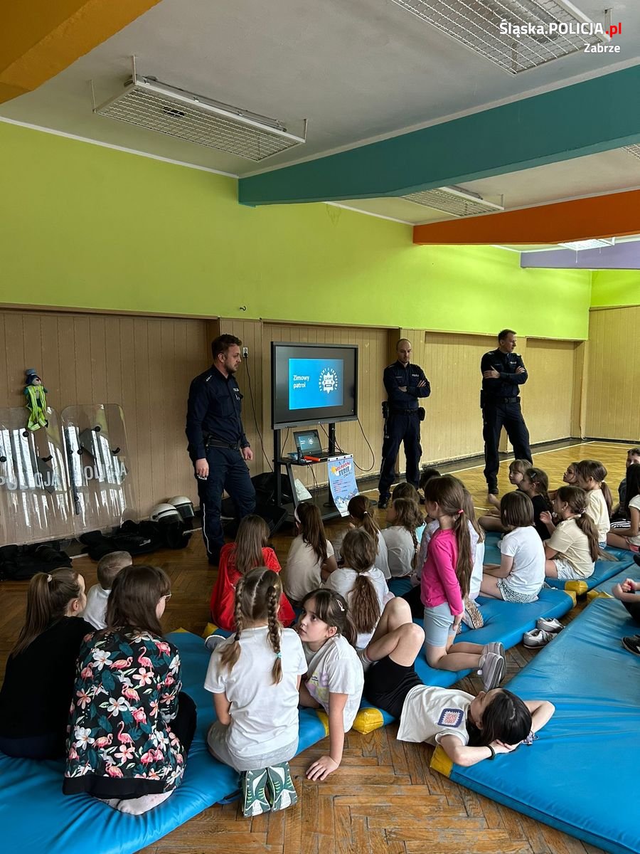 Okres ferii to nie tylko czas zimowego relaksu dla dzieci i młodzieży, ale również czas intensywnych spotkań policjantów z najmłodszymi mieszkańcami naszego miasta. Zabrzańscy mundurowi odwiedzają placówki, w których prowadzone są zajęcia dla dzieci w okresie zimowych ferii. Policjanci rozmawiają z dziećmi o najczęstszych i najpoważniejszych zagrożeniach bezpieczeństwa podczas zimowego wypoczynku. Tym razem dzielnicowi z trzeciego komisariatu i policyjny profilaktyk spotkali się z dziećmi ze Szkoły Podstawowej nr 17 w Zabrzu.